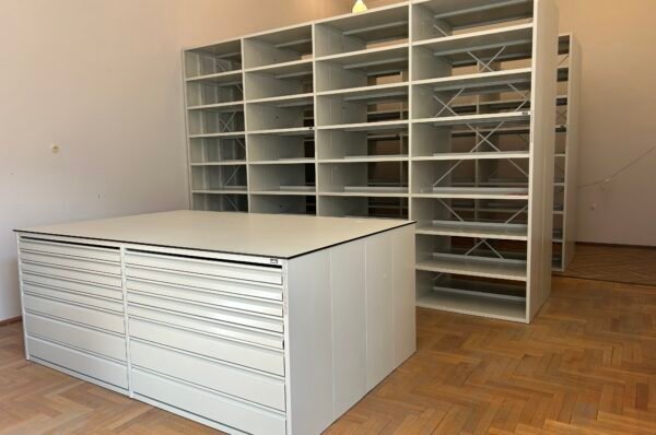 We are happy to share the success of our project. A client approached us with a request to utilize the existing space for document storage. The huge height of the room presented an interesting challenge, so we are happy to announce that we have turned the challenge into a great experience, we have maximized every centimeter of space and with the help of our partners, Bruynzeel Storage Solutions, we have installed the latest electronic control system that optimizes efficiency and availability. The height of this shelving system reaches as much as 4 meters 20 cm. Thus, we installed a system with a capacity of 697 linear meters in one relatively small room.